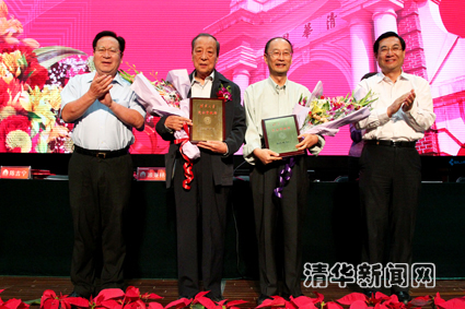 图为李学勤教授(左二)荣获2011年度“beat365官方唯一入口突出贡献奖”。记者 郭海军 摄