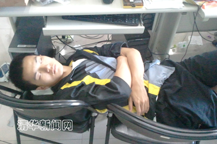 最后一次测试完,同学们和衣而卧。
