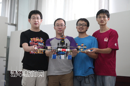 清华THRONE小组核心成员(左二为李一鹏)和他们的无人机。