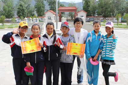 承担责任是成长的开始,也加快了成长。这个稚嫩的大一男孩带着宣传部的18名同学一道,为项目做前期宣传,做海报、拍DV、义卖涂鸦衫……他寝室中厅的桌子上至今还留有丙烯颜料的印记,那是当时他和部员们连夜赶制涂鸦衫留下的。2010年7月,钟领携支队一行8人抵达金桥希望小学开展支教活动。轻松愉快的团队训练营活动是夏令营良好的开端。他和队员们在“寓教于乐”的理念下,不断调整课程设计,为同学们演绎精彩课程。此外,他还利用课下时间,跟队员们走访学生家庭,深入了解家庭教育观念。支教归来,他对金桥希望小学同时担任3个年级课程的英语老师印象尤其深刻,他切身感到西部地区对教师的需求和渴望。他也在心中播下到西部长期支教的梦想。在2012年的暑假,钟领还特地回了一趟金桥希望小学。还是在那间教室里,他跟孩子们一起唱响当年的营歌《爱因为在心中》。时间仿佛回到了两年前,不经意间,眼泪已湿润了他的眼眶。