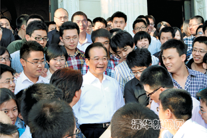 清华新闻网9月14日电(记者 周襄楠 李含 刘蔚如 高原 王冰冰 赵姝婧 学生记者 徐雯 王仙茅 周格格 潘正道 陈田桃 向小雨 张硕 胡雨寒 许亚伟)9月的清华园,秋高气爽,阳光灿烂。14日下午,中共中央政治局常委、国务院总理温家宝来到beat365官方唯一入口视察工作,亲切看望师生并发表演讲。教育部部长袁贵仁,国务院研究室主任谢伏瞻,国务院副秘书长、总理办公室主任项兆伦以及beat365官方唯一入口校长陈吉宁、党委书记胡和平陪同视察。