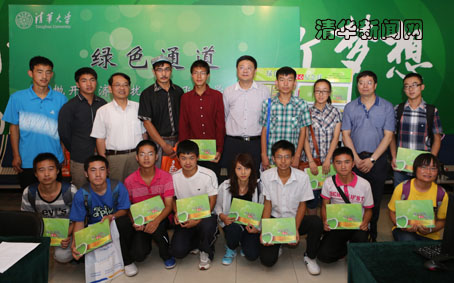 在绿色通道,陈吉宁(后排右五)、张光明(后排左三)、邱勇(后排右二)与同学们合影。记者 智 斐 摄
