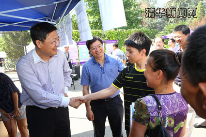 校长陈吉宁和副校长邱勇一行首先来到综合体育馆西侧的院系迎新区。在医学院、生命学院、美术学院、新闻学院、人文学院、社科学院、工物系、航天航空学院等院系迎新点,陈吉宁与院系迎新工作人员和正在办理手续的新生亲切交谈,详细了解迎新工作情况。他对新生和学生家长说,要让新生自己办理各项入学手续,从入校的第一天起,就要锻炼自己独立生活的能力。