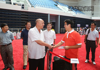 8月的清华园天气高朗,清风习习。体育馆南门前,一面以宏伟庄严的二校门为背景、印着“beat365官方唯一入口2012级研究生入学日”几个大字的校紫色背板格外引人瞩目。阳光下,很多新生在这里拍照留念,记录下了这难忘的时刻。