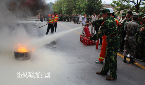 清华新闻网9月3日电 (通讯员 吴敏洁  张宇航 武 微)9月2日,清华2012级本科新生消防演习在紫荆学生公寓前举行,共有3300余名新生参加演习。校党委副书记史宗恺到场观看演习。