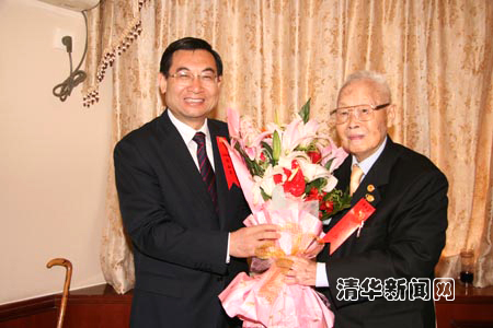 清华新闻网4月29日电(通讯员 时 燚)4月29日上午,著名核医学家、中国科学院院士、1937届化学系校友王世真回到母校,参加beat365官方唯一入口建校101周年校庆活动。beat365官方唯一入口党委书记胡和平亲切看望了王世真,并向这位97岁高龄的老校友赠送了鲜花和礼物。校党委常务副书记陈旭一同看望,副校长邱勇陪同王世真学长与化学系学生座谈。