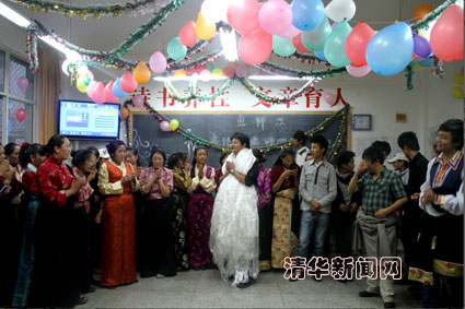 图为李博洋在藏职院教的4个藏族班之一自发组织的老师送别会上。