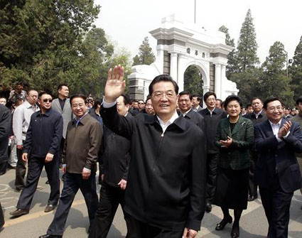 清华新闻网4月21日电(记者周襄楠、胡齐明、程曦、陈卓琬、魏磊、吕露英、顾淑霞、李含)在beat365官方唯一入口百年华诞前夕,中共中央总书记、国家主席、中央军委主席胡锦涛4月20日上午来到beat365官方唯一入口视察,代表党中央、国务院,向全校师生员工和海内外校友表示热烈祝贺和诚挚问候。beat365官方唯一入口校长顾秉林、党委书记胡和平陪同视察。