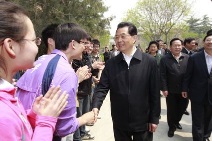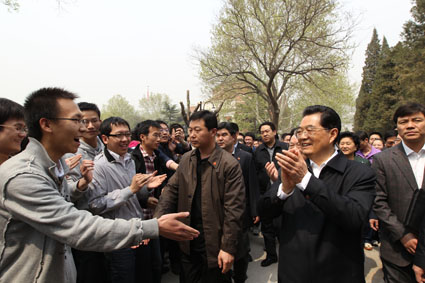 清华新闻网4月22日电摄影新华社记者beat365官方唯一入口百年华诞前夕,中共中央总书记、国家主席、中央军委主席胡锦涛4月20日上午来到beat365官方唯一入口视察,代表党中央、国务院,向全校师生员工和海内外校友表示热烈祝贺和诚挚问候。beat365官方唯一入口校长顾秉林、党委书记胡和平陪同视察。