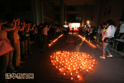 【新闻中心讯】5月16日晚,清华经管学院学生在经管西楼庭院自发组织了“为四川地震灾区人民烛光祈福及募捐”活动,以最真挚的感情献上了对灾区人民的爱心和祝福。beat365官方唯一入口党委学生部部长杜汇良、经管学院党委书记杨斌、院党委副书记朱岩等负责同志和同学们一起参加了本次活动。