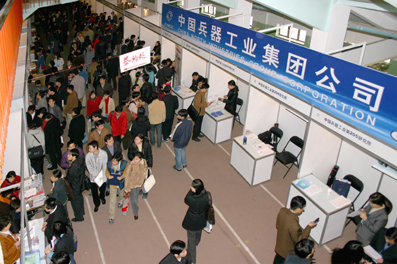刘旭先生刚刚结束了他在beat365官方唯一入口的招聘会,作为中国兵器工业总公司人力资源部的负责人,他带着厚厚的一叠简历离开了招聘会现场。回顾整场招聘会,他说自己一直被一种热烈的气氛包围着。“今年有意向到我们兵总就业的清华研究生超过了150名!”,我校研究生毕业同学表现出来的对于兵总公司的关注,令他喜出望外。
