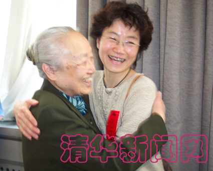 在会场中,一位头发花白、身穿绿色套裙的老人格外引人注意。她和身边的学生握手、拥抱,询问大家的近况。这位老人是环境系退休教师俞毓馨,也是环境系1981级同学的班主任。据环境系的同学介绍,他们每次回校都会去看俞老师,这次20年聚会全年级还专门带上俞老师与另一位班主任到密云举行聚会。