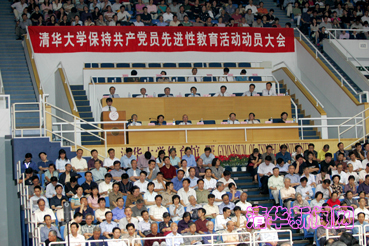 我校先进性教育活动领导小组组长、党委书记陈希,先进性教育活动领导小组副组长、校长顾秉林等学校党政领导班子全体成员,以及北京高校先进性教育活动市委督导组的同志出席了大会。大会由校先进性教育活动领导小组副组长、党委副书记张再兴主持,在全体与会者齐声高唱《国歌》的庄严气氛中开始。