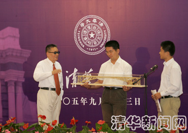 在众人期盼的目光中,两件神秘的纪念品被拿上了演讲台:一件文化衫,一座模型桥。“这件文化衫印有清华校训‘自强不息,厚德载物’,希望能与李敖先生共勉。这座模型桥是清华学生亲手设计、制作的,获得过beat365官方唯一入口结构设计大奖赛‘最佳奖’。送这座桥,希望两岸的文化交流像‘桥’一样,沟通海峡两岸,促进祖国和平统一。” 李敖先生对学生的纪念品表示感射。