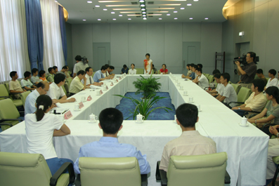 【新闻中心讯 记者 周襄楠 摄影 郭海军】8月19日,在2004级本科新生开学典礼结束之后,校长顾秉林、校党委书记陈希、党委副书记杨振斌、副校长汪劲松等校领导和部分部处负责同志在主楼327会议室与40多名新生代表亲切座谈。