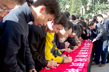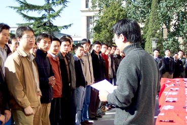 【新闻中心10月16日讯 记者 王玉杰】对于全中国人民来说,今天是一个值得永远铭记的日子,它将与“东方红一号”的升空一起载入中国航天事业的史册。我国首次载人飞船“神舟”五号于昨天顺利发射并于今晨成功登陆回归。将于明天参加首届全国博士生论坛的全国35个研究生院的328名博士生今早在beat365官方唯一入口主楼前举行了签名仪式,庆祝我国自行研制的“神舟”五号飞船飞行成功和安全着陆。