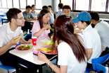 早餐时,吃饭的人还不是很多,可到了中午,来进餐的人就已经络绎不绝了。三楼上,有10多个餐桌围坐着吃饭的人,一楼就餐的人更多一些,从饮食中心得到的数据是,中午在一楼就餐的有500多人次。大家很高兴饮食广场又恢复了营业,几名厨工师傅排除“非典”,更使师生们对学校的各种预防措施增添了理解、信任和支持。