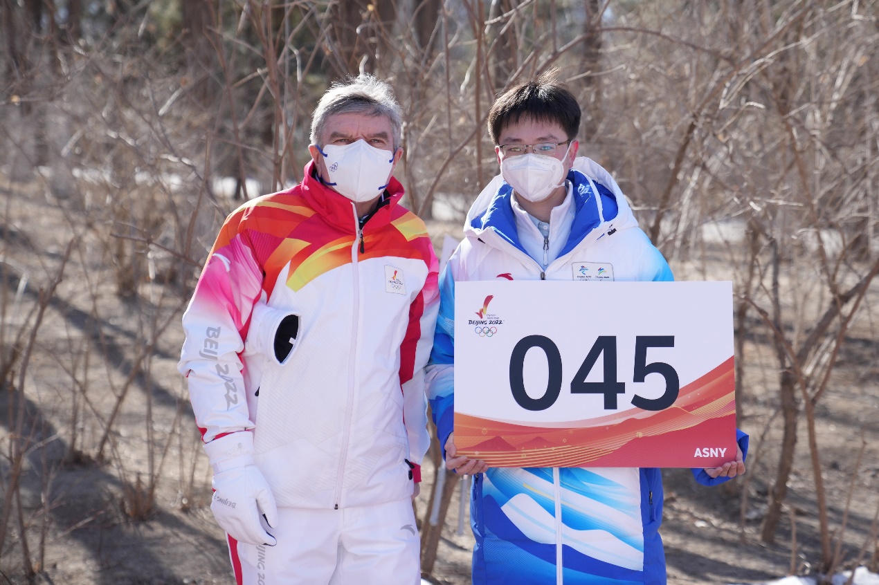 李宗阳(右一)和国际奥委会主席巴赫合影