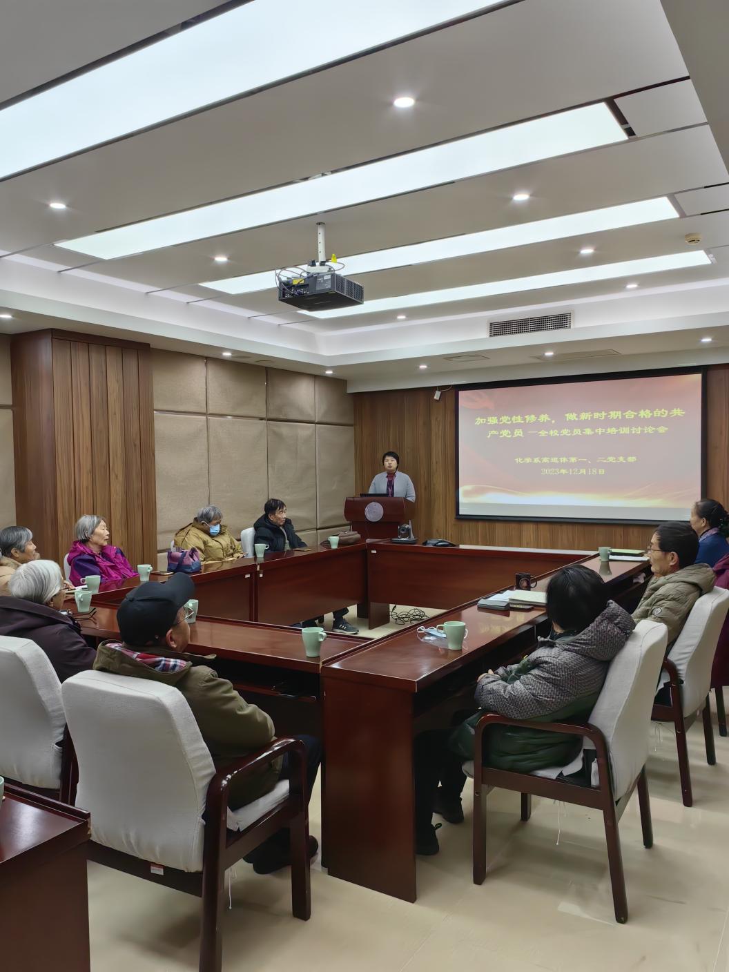 化学系离退休教职工第一、二党支部在进行集体讨论