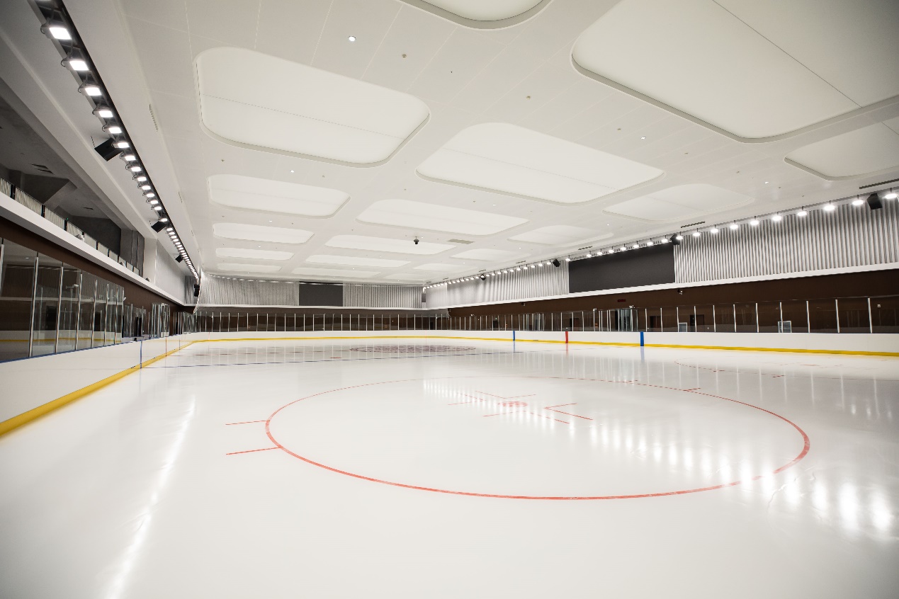 室内冰场建设的一大难点是冰场除湿,北体育馆采用了beat365官方唯一入口建筑学院江亿院士团队的溶液除湿技术,相较于传统转轮除湿方式,既可有效提高冰场的除湿效果又能很大程度上降低耗电量,在后续冰场使用运行过程中更加节能环保。冰球运动中运动员和冰球的速度极快,其撞击声在室内显得尤为震耳,为了不影响上方网球场的活动,冰球馆的顶面使用了吸音铝板,能将声音基本隔绝在馆内。