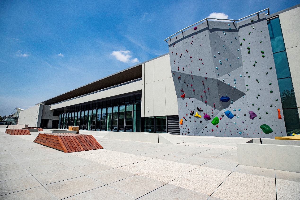 新落成的北体育馆位于校内东北侧体育运动场区内,作为清华的又一大综合性体育馆,其特色与优势突出,可总结为“多、大、巧、新”。“多”——场馆内可开展的体育项目多。北体育馆集冰上运动中心(冰球、冰壶、滑冰等)、模拟滑雪馆、旱冰场、击剑馆、壁球馆、体操馆、网球馆、乒乓球馆、篮球馆、排球馆、攀岩墙、健身中心、体能训练和康复中心等为一体。