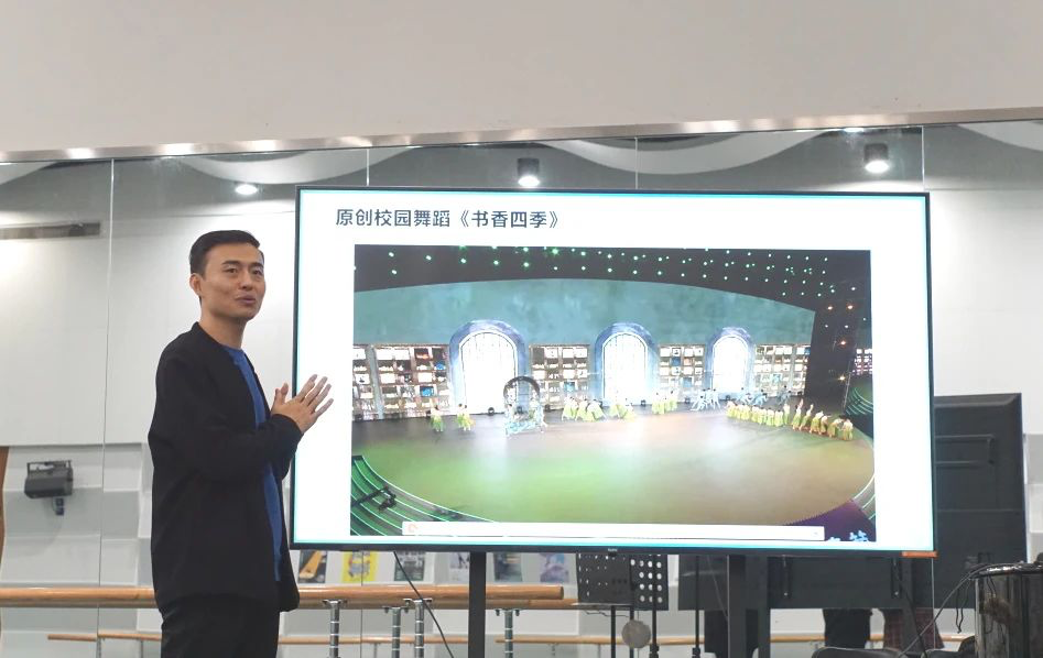 清华舞蹈队指导教师张伟介绍了清华舞蹈队《马兰花魂》《书香四季》等原创剧目的编创背景与历程,讲解了科技与舞蹈的结合及创编过程中的力效运用。