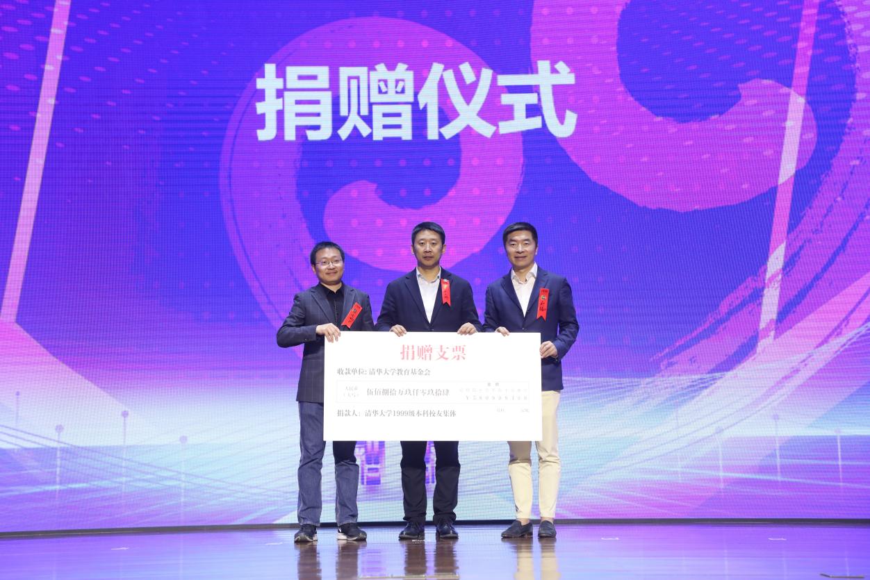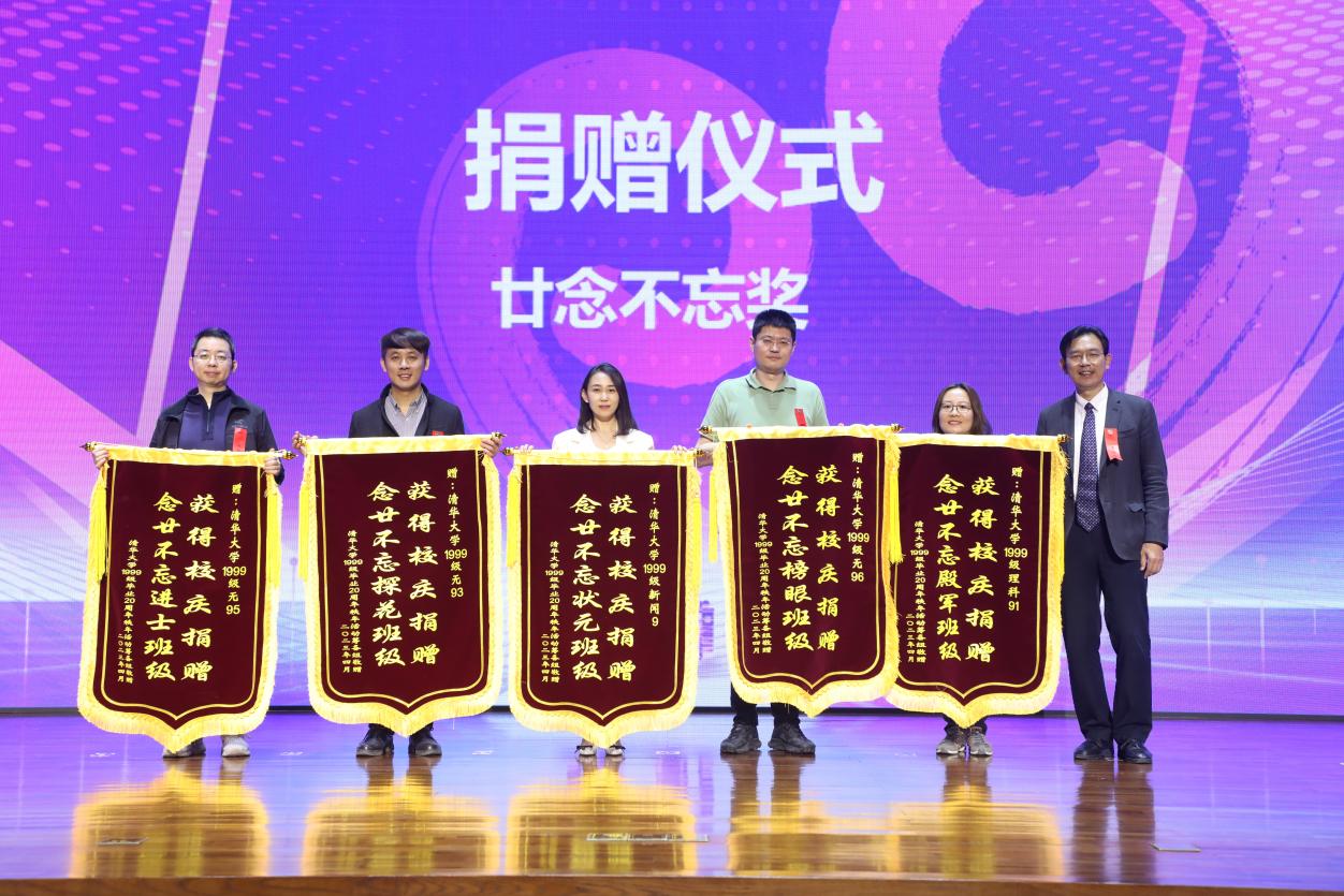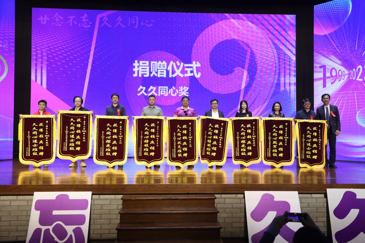 现场举行了1999级校友毕业20周年捐赠仪式。在历年秩年活动的年级捐款中,1999级校友是截至目前年级基金中参与人次最高、筹款金额最高的一届。捐赠款项将主要用于支持学校事业发展和建设,未来拟在学校的教育基金会设立“久久同心”科学博物馆发展支持项目,剩余部分将用于设立年级互助基金、久久温暖基金等。物理系校友赵福、精仪系校友周鹏飞代表1999级校友进行捐赠,教育基金会副秘书长孙大鹏代表学校接受捐赠。李路明分别为捐赠金额名列前五的班级和参与率并列前五的班级颁发了“廿念不忘奖”和“久久同心奖”锦旗。