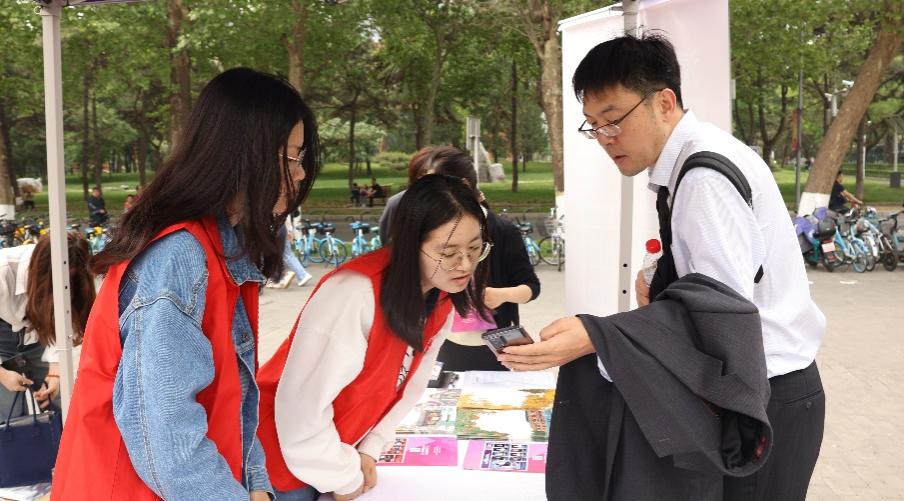 志愿者为游客讲解校园风物