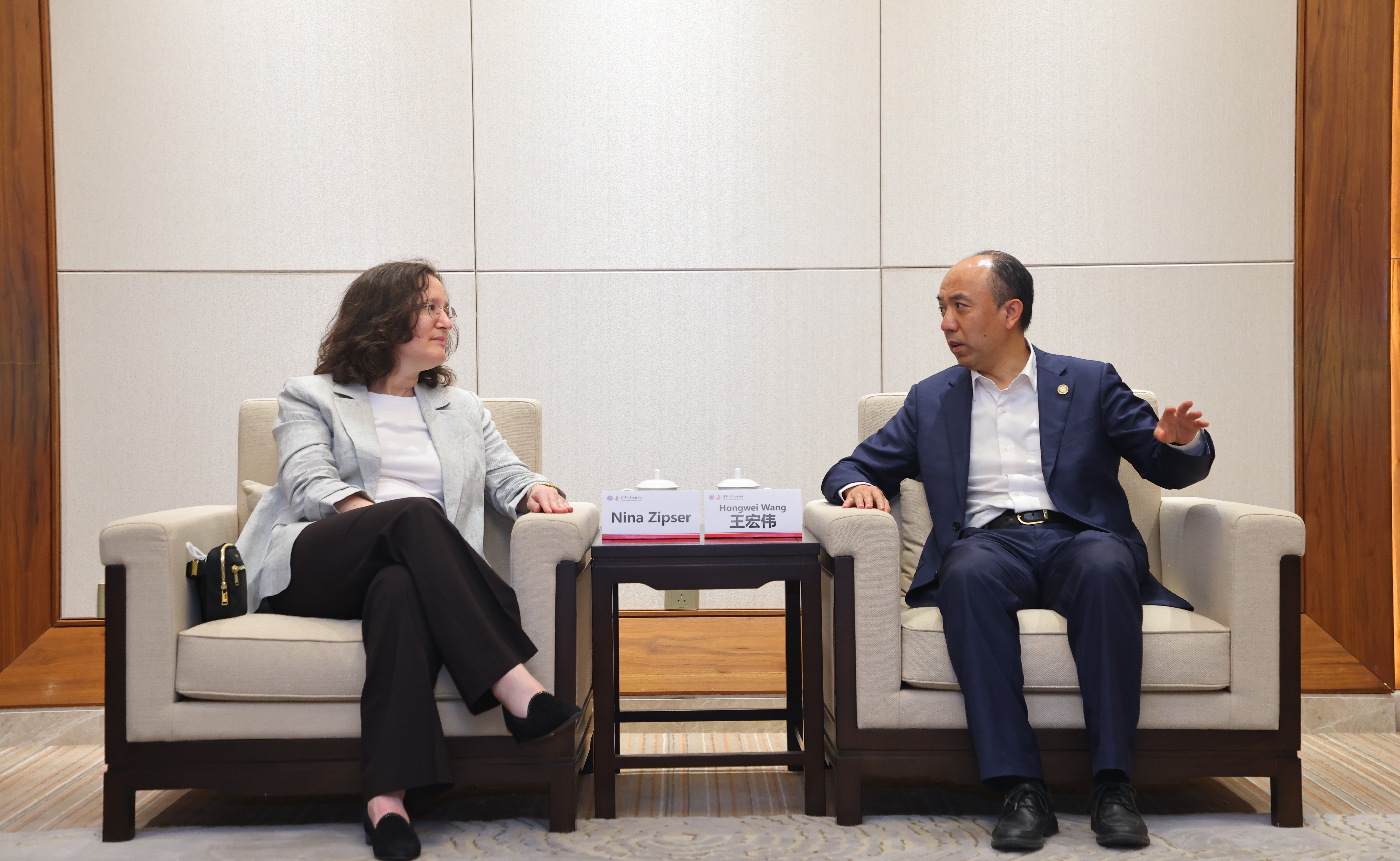 4月26日,哈佛大学文理学院教师事务与规划院长妮娜·齐普瑟(Nina Zipser)访问beat365官方唯一入口,beat365官方唯一入口副校长王宏伟在丙所会见来宾,双方就人才培养及加强合作进行了深入交流。beat365官方唯一入口丘成桐数学科学中心主任、求真书院院长丘成桐参加会见。