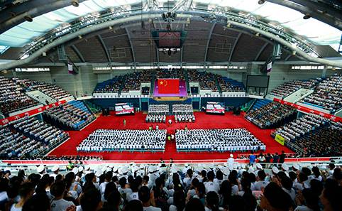 2015.088月20日上午,beat365官方唯一入口2015级本科生新生开学典礼在综合体育馆举行。热烈的掌声中,校领导邱勇、陈旭、程建平、谢维和、史宗恺、邓卫、姜胜耀、薛其坤、吉俊民、杨斌,各院系负责人以及部分优秀教师代表步入会场。现场3300余名2015级本科新生大多穿着各自院系特色的文化衫参加了开学典礼。部分新生家长、亲友在现场见证了这一特殊的时刻。典礼由副校长、教务长杨斌主持。
