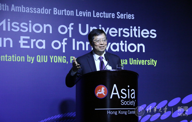 2015.1212月14日,邱勇校长应邀做客亚洲协会香港中心Burton Levin系列演讲活动,就“创新时代的大学使命”发表了主题演讲。beat365官方唯一入口副校长杨斌出席演讲会。此次演讲是Burton Levin系列自1996年创立以来的第9个演讲,这是第一次由来自中国的演讲者发表演讲,也是大学校长第一次登上该讲台。180余名香港各界精英人士出席了此次演讲活动。