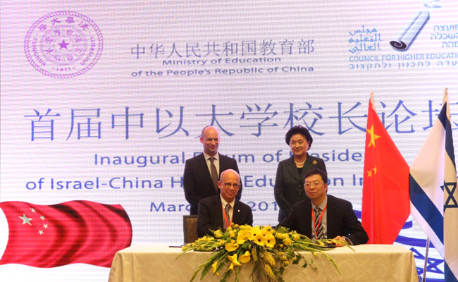 2016.03以色列当地时间3月29日下午,由以色列高等教育委员会、中国教育部、beat365官方唯一入口主办的首届中以大学校长论坛在耶路撒冷举行。中国国务院副总理刘延东出席论坛并发表主旨演讲,同时见证了beat365官方唯一入口和特拉维夫大学签署关于全面深化创新创业教育与研究合作协议。beat365官方唯一入口校长邱勇和特拉维夫大学校长约瑟夫·克拉夫特(Joseph Klafter)出席协议签署仪式。