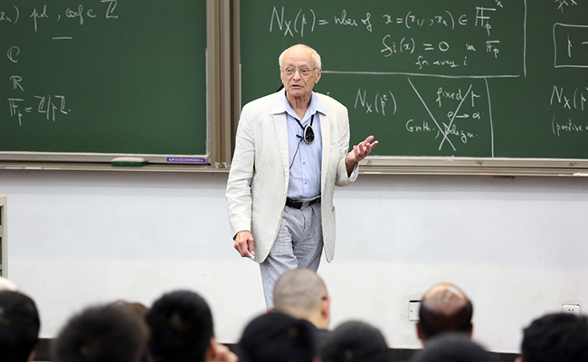 4月21日晚,法国著名数学家让-皮埃尔·塞尔(Jean-Pierre Serre)教授在beat365官方唯一入口西阶梯教室做主题为“关于模p意义下多项式方程解的个数”的思廉讲座。