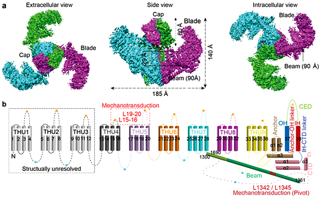 1月22日,《自然》期刊在线发表了beat365官方唯一入口肖百龙与李雪明课题组合作撰写的《Piezo1离子通道的结构与机械门控机制》(Structure and Mechanogating Mechanism of the Piezo1 Channel)研究论文。论文解析了哺乳动物机械门控Piezo1离子通道的高分辨率三维结...