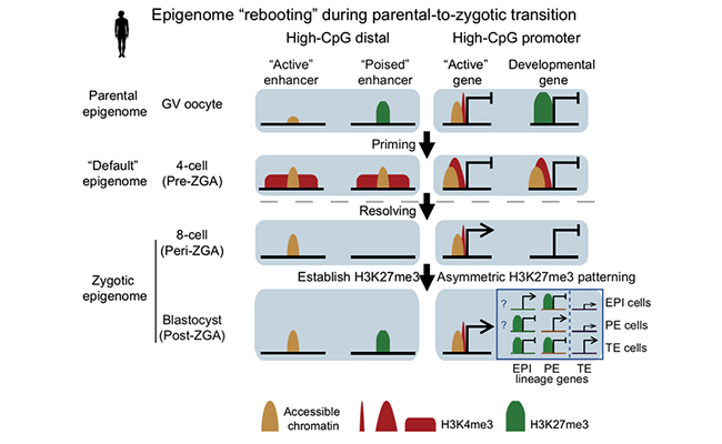 2019.07清华生命学院颉伟课题组在《科学》期刊合作发文揭示人类早期胚胎组蛋白修饰重编程过程