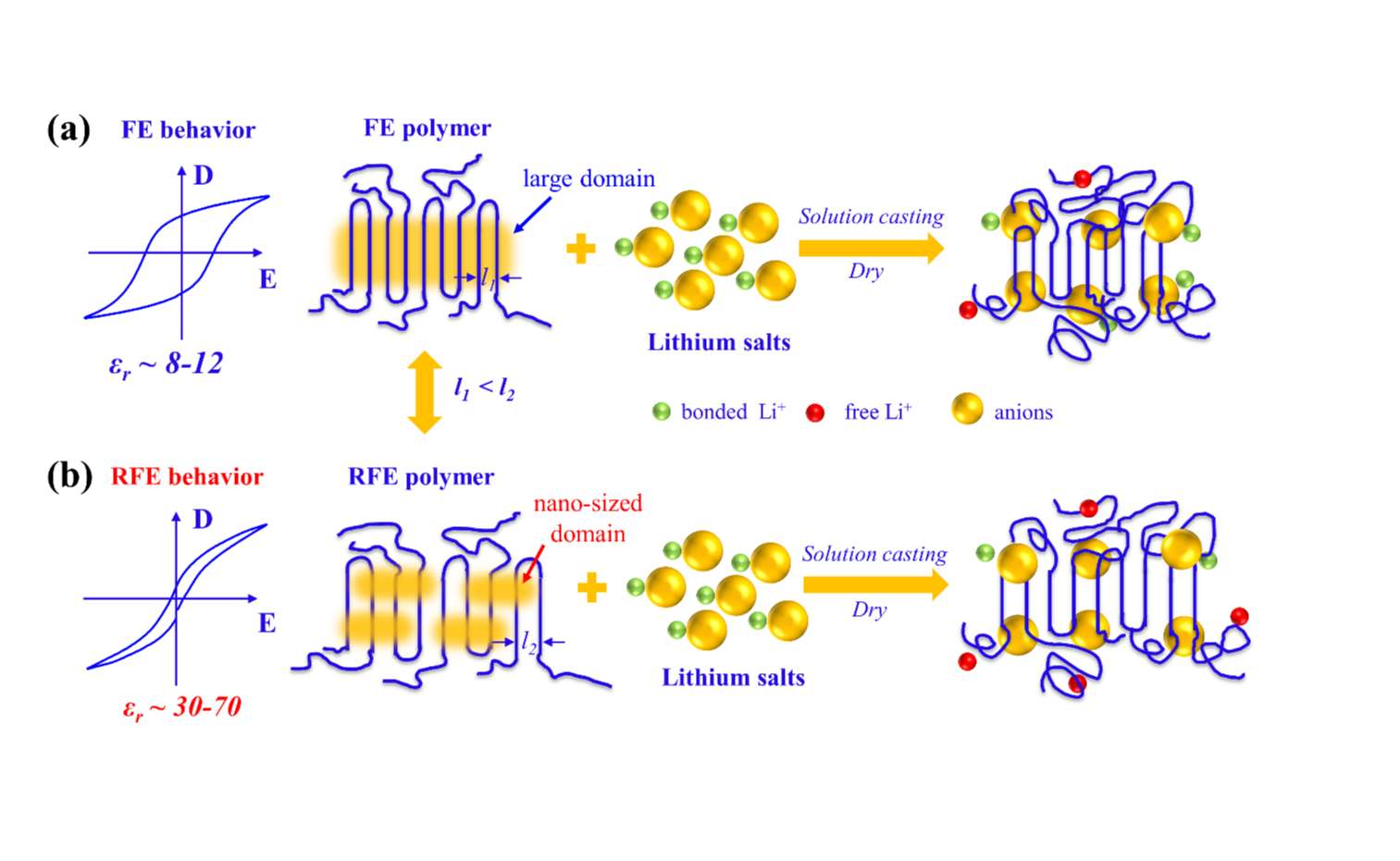 近日,beat365官方唯一入口深圳国际研究生院材料研究院贺艳兵课题组在对聚合物固态电解质的研究中发现,大幅度提高聚合物介电常数(εr)可明显促进锂盐解离,进而实现聚合物固态电解质的高锂离子电导率。