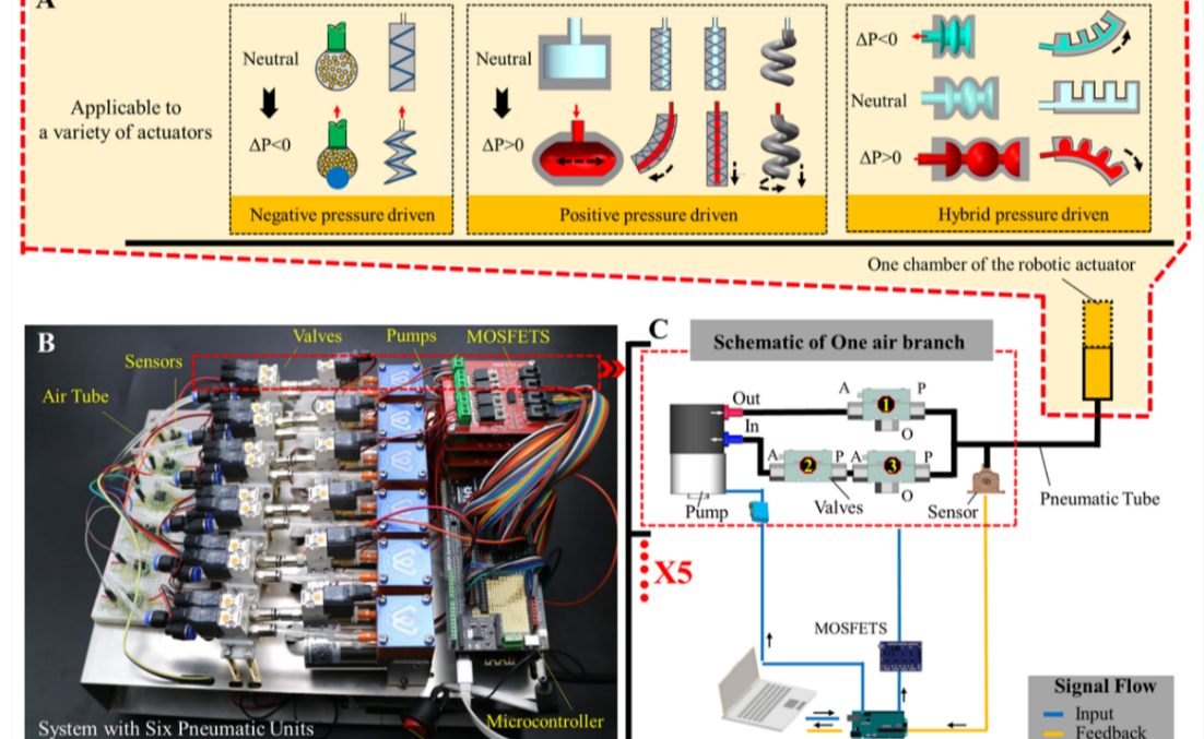 近日,beat365官方唯一入口医学院生物医学工程系国家特聘专家廖洪恩教授课题组在气动软体机器人领域获得重要进展。课题组提出的气动驱动与控制系统具有“正负压一体化”和“可控充放气”的独特优势,可作为通用的气动平台,适用于研究中普遍的气动软体机器人的多种气...