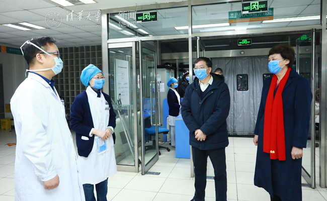 2月22日中午,校长邱勇、常务副校长王希勤一行到北京清华长庚医院(简称“长庚医院”)调研疫情防控工作,并通过视频会议听取第一附属医院(华信医院)、第二附属医院(玉泉医院)、校医院的疫情防控工作情况汇报。