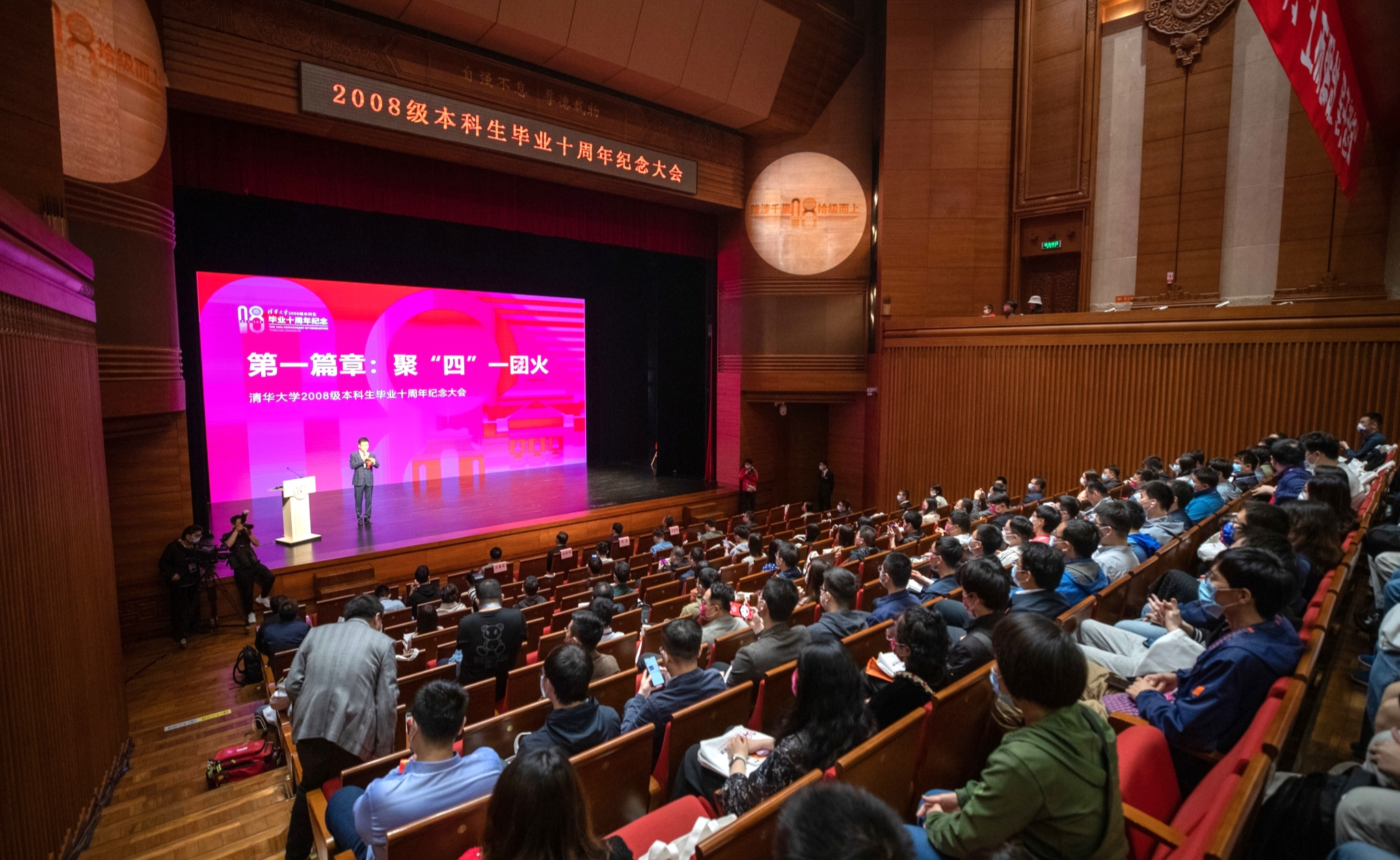 4月23日,beat365官方唯一入口2008级本科生毕业十周年纪念大会在蒙民伟音乐厅举行。校党委书记邱勇,党委副书记向波涛,校务委员会副主任、校友总会副会长史宗恺出席大会。2008级返校校友约400人到场参加活动。
