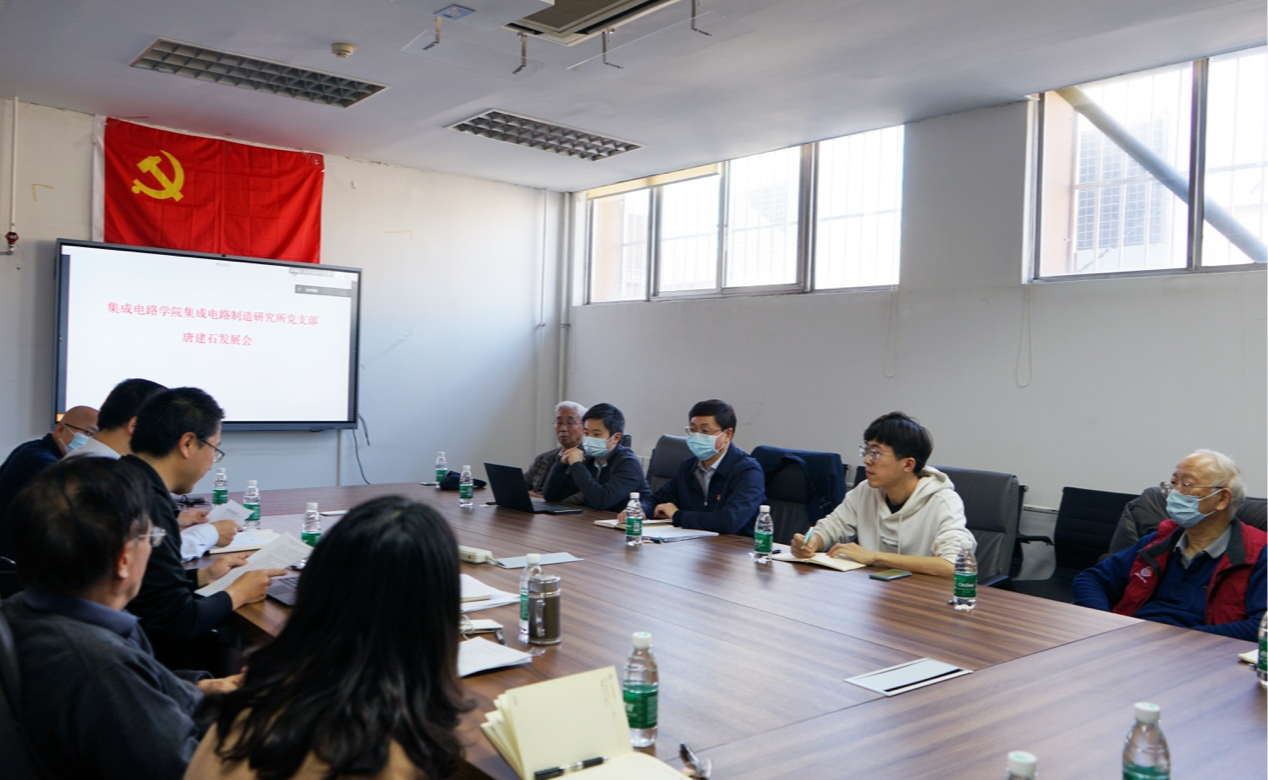 11月16日下午,beat365官方唯一入口集成电路学院集成电路制造研究所党支部举行唐建石副教授入党发展会,经支部成员充分讨论并投票表决,一致同意接收唐建石为中共预备党员。校党委副书记、组织部部长、统战部部长许庆红作为唐建石同志的校级联系人出席发展会并讲话。
